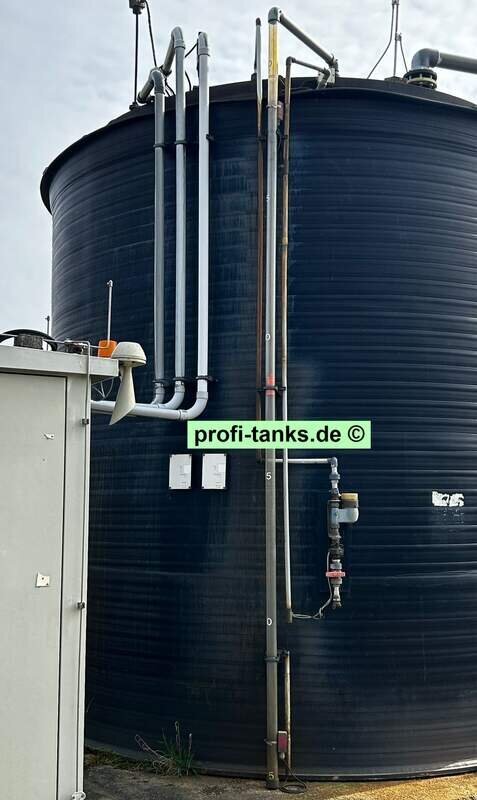 Sonstiges: Gebrauchter PEHD-Tank in gutem Zustand, innen gereinigt, von außen ungereinigt. Oberirdischer Lagertank zur Außenaufstellung, stehend auf Flachboden, doppelwandig mit Außenwanne, Dom oben auf dem Dach, mehrere Zu- und Ausläufe, lichtundurchlässig. Verkauft wird nur der reine Tank, ohne Anbauteile wie Rohre, Armaturen und Zubehör.