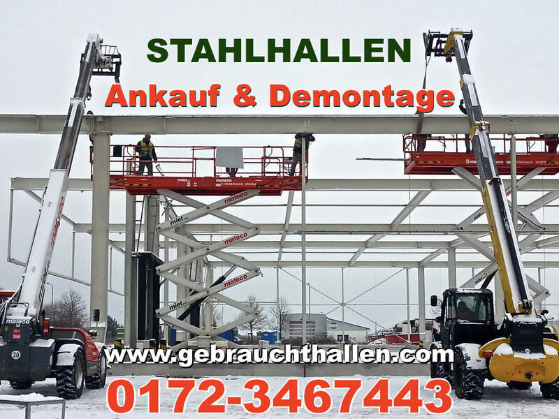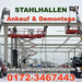 Wir demontieren laufend remontierbare Stahlbauhallen aus Abbruch zur Weiternutzung der Stahlrahmenkonstruktionen in neuen Hallen-Bauvorhaben.
