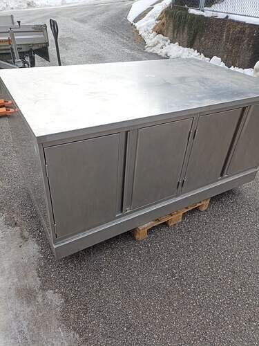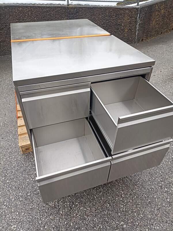 Arbeitstische Edelstahl massiv mit Türen bzw. Laden Als Insel da links und rechts Türen bzw. Laden. Top Zustand sehr massiv