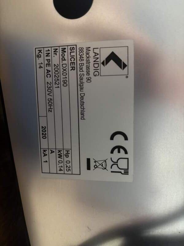 Biete eine neue, unbenutzte Aufschnittmaschine von Landig (Germany) zum Verkauf.