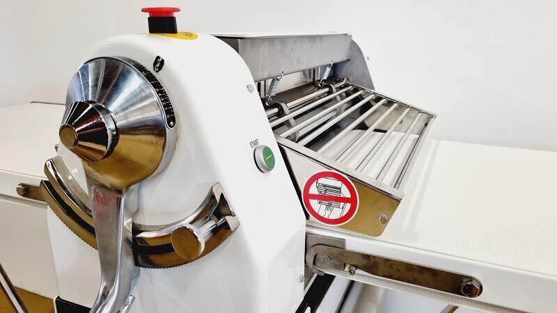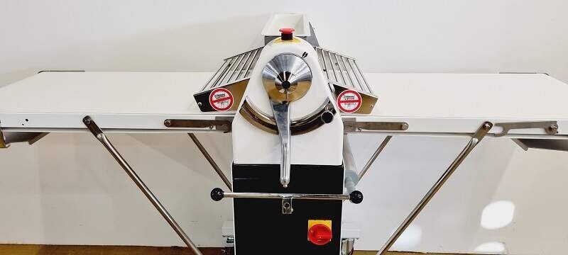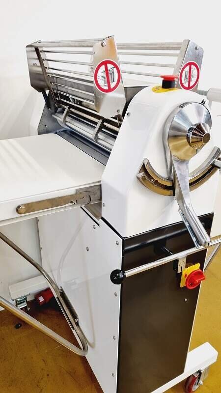 Unsere Ausrollmaschine Modell: SM 520 F ist ausgereifte Technik und schon vielfach bewährt ihre einfache Steuerung ist für alle Teige zum Ausrollen und Tourieren geeignet und mit einer Tischlänge von 980 mm und Ausrollbreite 520 mm sehr kompakt.