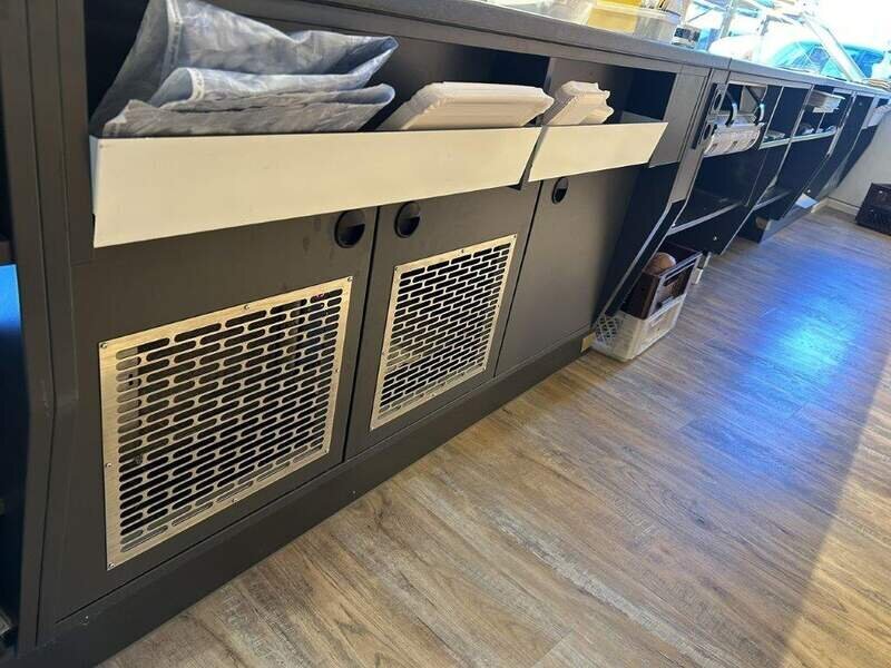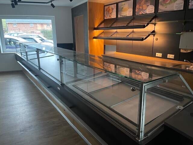 Bäckereitheke,Gesamtlänge 5,70 m, davon sind 0,85 und 1,25 m gekühlt.