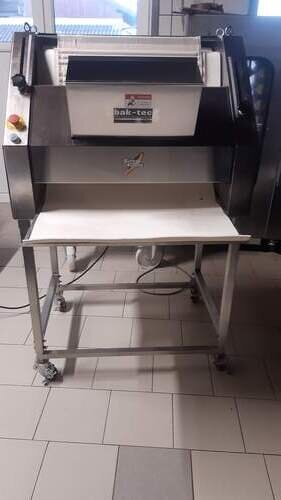 Kompletter Baguettelangroller in Edelstahl-Verkleidung + robuster Baguette-Langroller + mit gesichertem, hohen Einfuhrtrichter + mit Schutzschalter am Einfülltrichter, stoppt die Maschine sofort (siehe Video!) + Transportbänder aus Filz + einfache, mechanische Einstellung der Langroll-Eigenschaften Technische Daten: - Langroll-Breite: max. 750 mm - Gewichtsbereich: 50 - 1.200 gr - Stundenleistung: ca. 1.200 Stk. (teigabhängig) - Motorleistung: 0,37 kW - Anschlusswerte: 400 V - 3Ph - 50Hz - 16A-CEE-Stecker - Abmessungen: 97 x 68 x 155 cm (BxTxH) - Höhe der Maschine: ca. 70 cm (ohne Gestell) - Nettogewicht: 250 kg mit 4 Schwenkrollen, 2 davon mit Feststeller Edelstahl-Ausführung