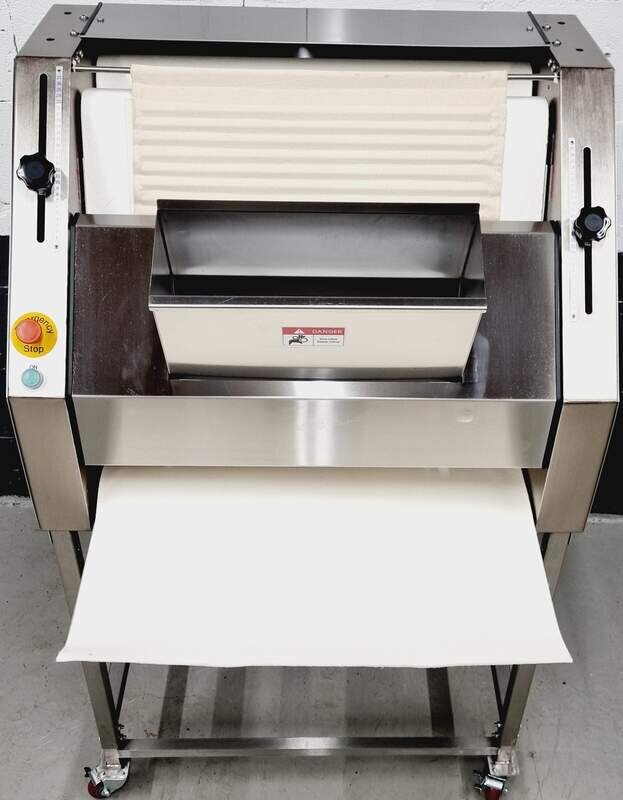 Der Baguettelangroller Modell: SM 380 S hat eine Teigeinlage von 50 bis 1200 g und eine Ausrollbreite: bis max. 750 mm und ist in Edelstahlausführung fahrbar