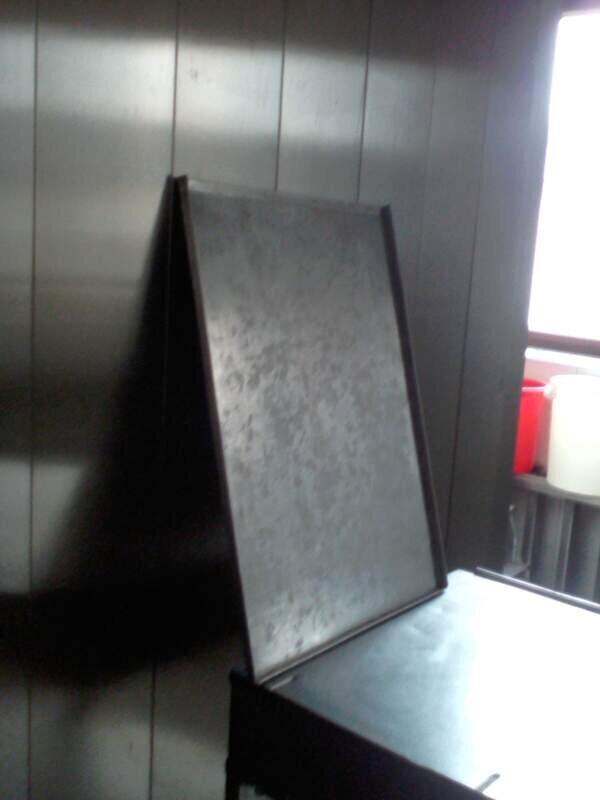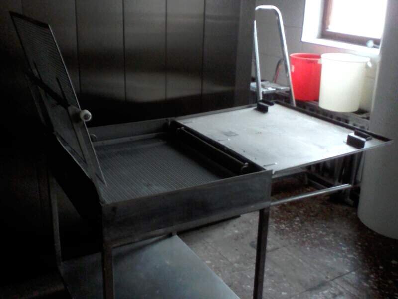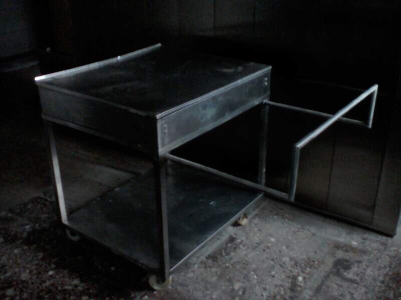 Gebrauchtes Belaugungsgerät aus Edelstahl für Bäckerbleche 80cm x 60cm zu verkaufen. Funktionsfähig. Zustand gut. Steht auf Rollen.