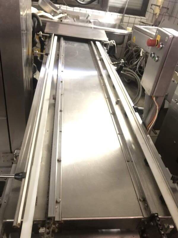 Die Brezelmaschine ist ca 8 m lang besteht aus einer Kopfmaschine sowie verschiedene Förderbänder einen Schlinger und einer Ablagevorrichtung die ihre Brezel direkt auf ein Blech legt. Der Industriekompressor ist auch dabei.