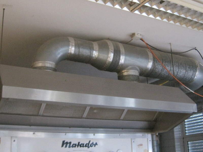 Dampfabzug 2 m breit aus Edelstahl mit Abluftrohren Mayer Lüftungstechnik