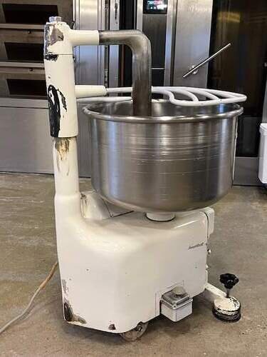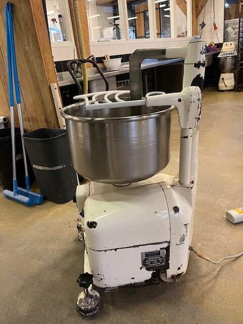 Wir verwenden diese Maschine seit Jahren, aber sie ist mittlerweile überflüssig geworden. Ideal für Roggen-, Dinkel- und Emmerteige, geeignet für 25 Kilo Mehl. Läuft ziemlich schnell, 2 Gänge, mit Timer und Sicherheit