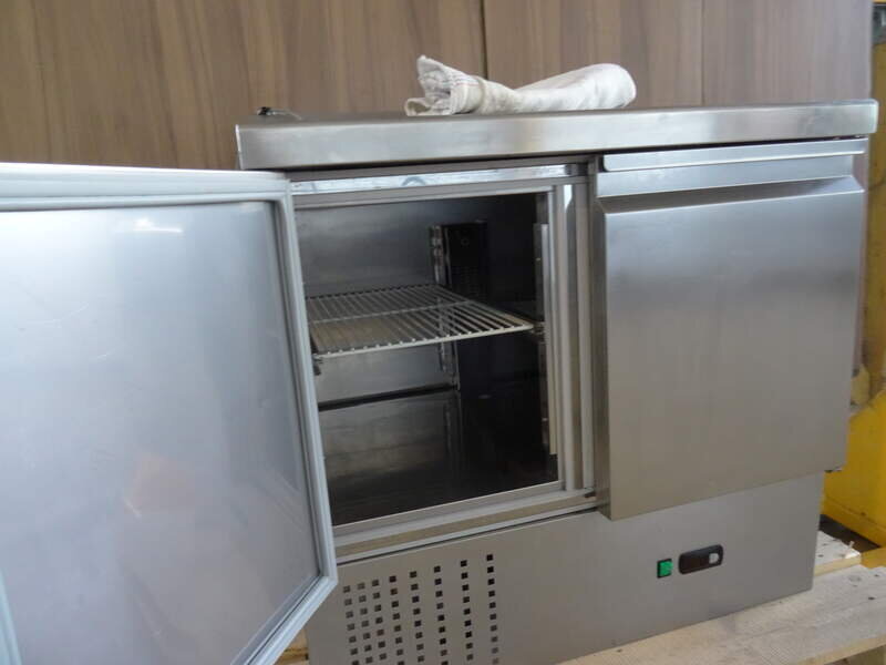 Arbeitstisch Edelstahl, Edelstahlhängeschrank und Edelstahl-Kühltisch guter gebrauchter Zustand
