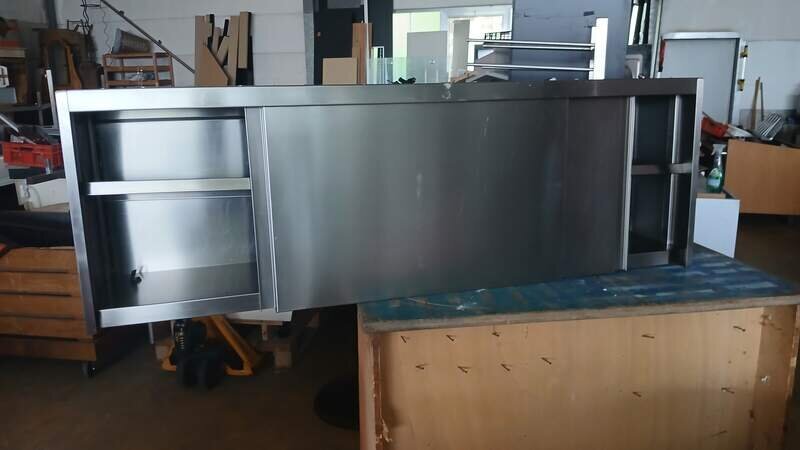 Edelstahlhängeschrank und Edelstahl-Kühltisch