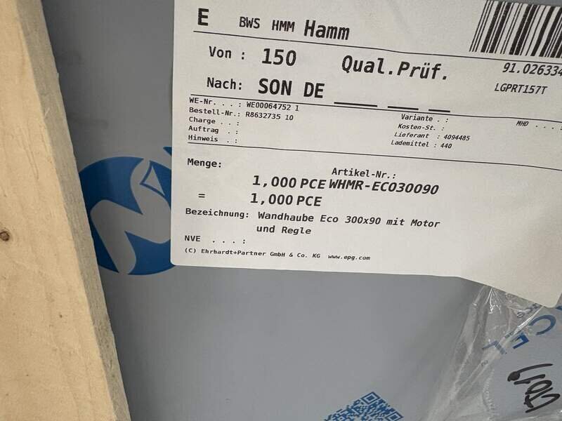 hiermit bieten wir eine Wandhaube in Silber mit Motor und Regler zu Kauf an. Die Haube ist noch Original verpackt und kann abgeholt werden. Leider passt die Haube bei uns nicht rein. Die Maße sind 3000x900x450 mm