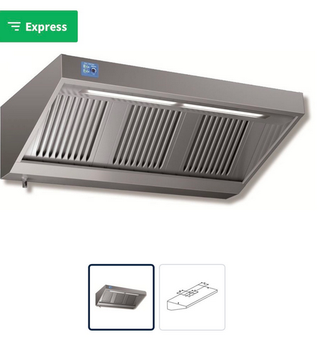 Die Dunstabzugshaube ist aus Chromstahl und mit 6 passenden Flammenschutzfilter B ausgestattet.