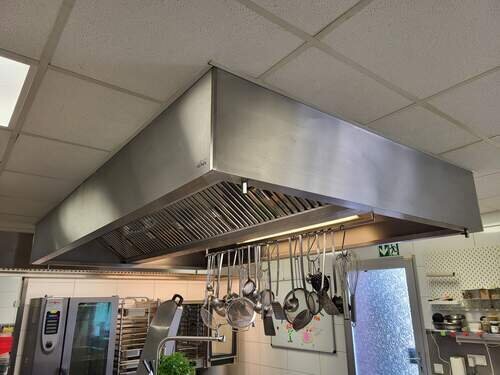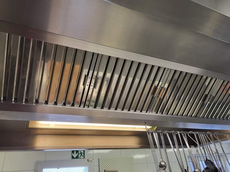 Große Dunstabzugshaube schwere Ausführung mit doppelten Filtern in Edelstahl. Starke Maschine kann mit gekauft werden. 6 Jahre alt.