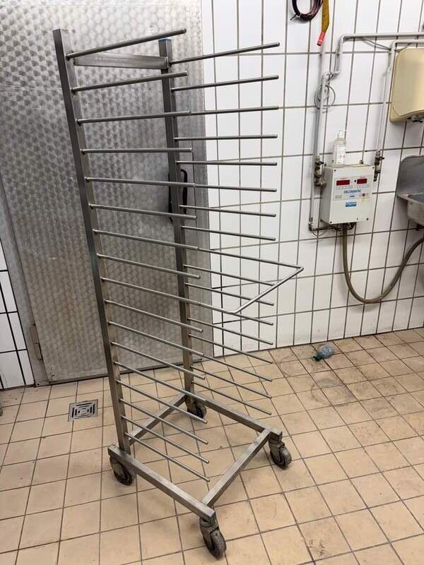 Verkaufe einen Edelstahl-Transportwagen / Blechwagen mit Einschüben für 60×40 Bleche.