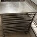 Edelstahl-Glasiertisch/Abtropftisch auf Rollen, ca. H 90 cm, T 81 cm, B 65,5 cm. 10 Einschübe für 80×60 Bleche oder 2× 60×40 je Ebene. Gebraucht, stabil, Abholung. 2 Stück vorhanden