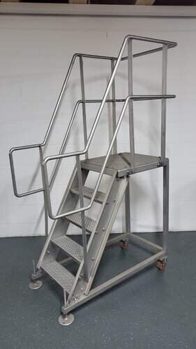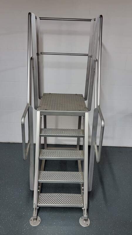 Angeboten wird ein Treppen/Rollpodest Leiter mit Geländer. Zustand Neu.