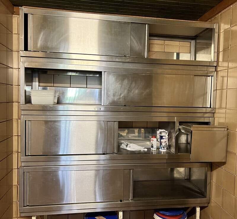 Hängeschränke Edelstahlschrank Breite ca. 200 cm Höhe ca. 50 cm Tiefe ca. 60 cm Mit Schiebetüren und einer mit Schublade