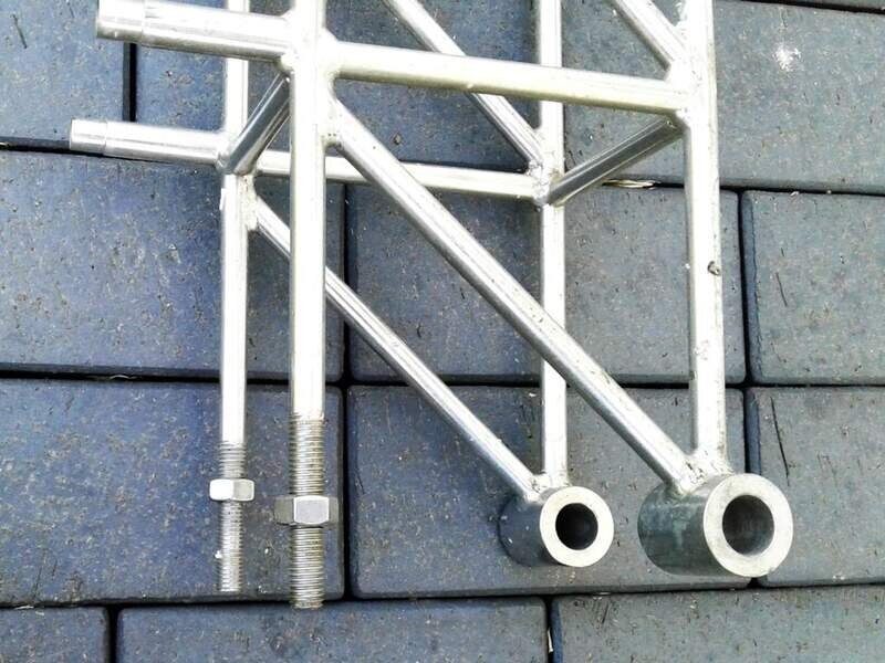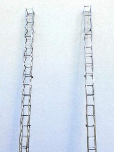 Edelstahlrundmaterial 12 mm. Der Wandabstand beträgt 65 mm. Die Edelstahlträger wurden oberflächenpoliert.