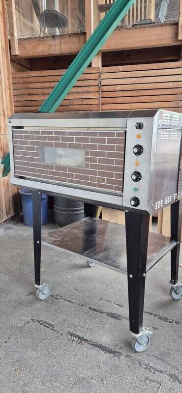 Vollschamott Elektro Backofen von NFG ( Österreich ) mit 70 x 70 cm Backfläche. Leistung 8kw, 300° C , auf Gestell mit Rollen, Edelstahl, 400V, mit Schwadeinrichtung.