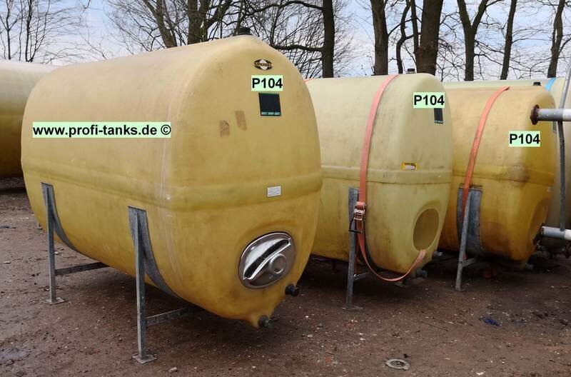 Wasserertank für Spritzen, stehend oder liegend, 3.000 L. Gebrauchter Polyestertank / GFK-Tank, als Spritzentank, Wassertank, Fass, Lagerbehälter für Feldspritzen, Löschwassertank. Mit mehreren Zu- und Ausläufen zum Befüllen Ihrer Feldspritze.