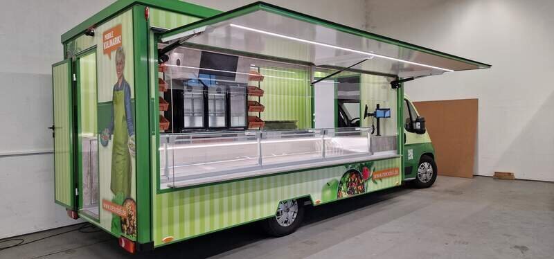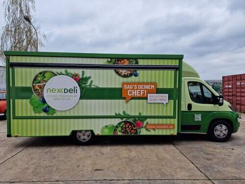Aktuell ist das Fahrzeug an den Flächen in Grüntönen foliert. Die Folie kann jederzeit entfernt werden.