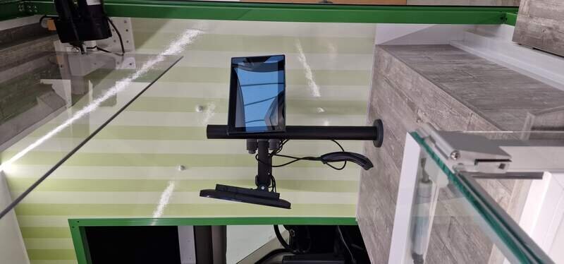 Die Rahmungsprofile des Aufbaues bestehen aus Aluminium in Farbe weiß (ähnlich RAL9016).