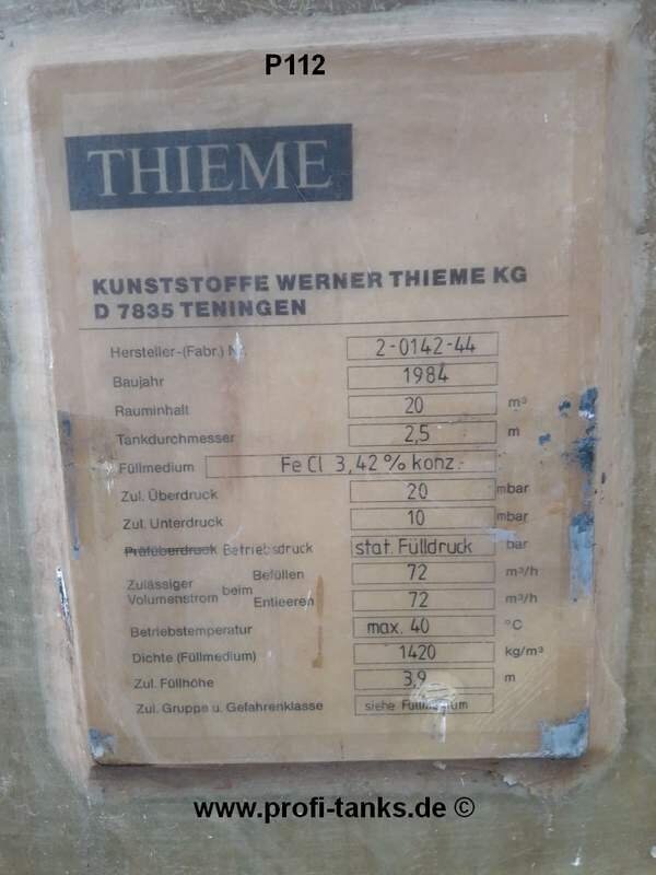 P112 - gebrauchter ca. 20 m³ / 20.000 Liter Polyestertank, oberirdisch, stehend, Flachboden