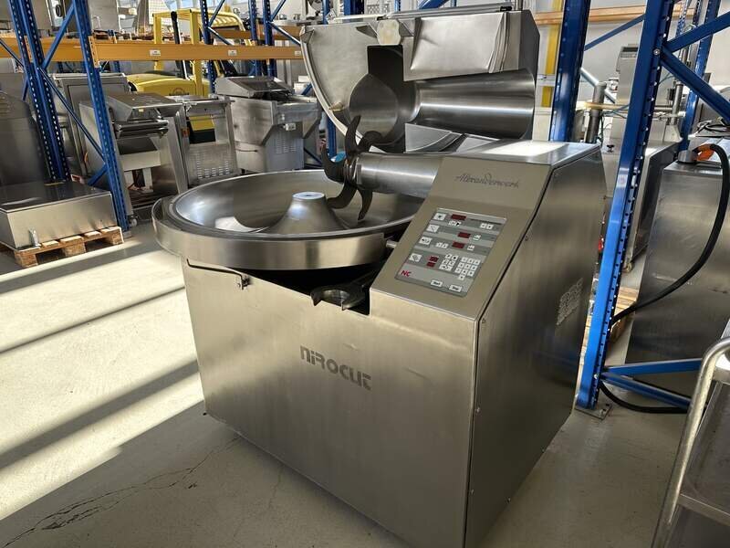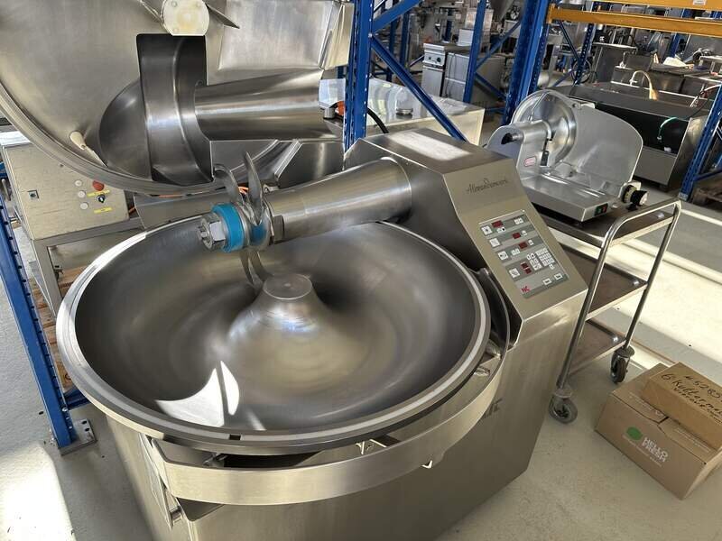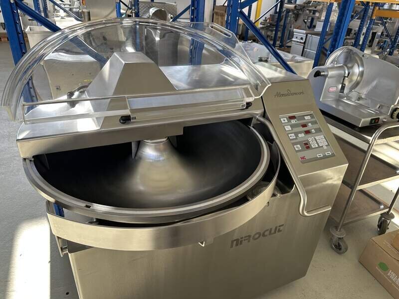 Wir verkaufen hier einen Fleischkutter vom Hersteller Alexanderwerk, Typ Nirocut NCM 65S in einem sehr guten gebrauchten und funktionstüchtigen Zustand. Die Maschine läuft auf 400 Volt, 15/20 kW, komplett Edelstahl, Messerwelle 2 Gänge 1500/3000 U/Min, 2 Mischgänge 9/18 U/Min vor-/rückwärts, 6er und 4er Messerkopf, Ersatzmesser, steckfertig, Werkstatt geprüft, sofort einsatzbereit, Maße B/T/H 130/105/125 cm, weiteres auf Anfrage.