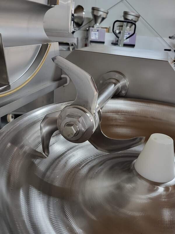 Anschluss 400V.9,5/11Kw.35A. Messerwelle 1.445 / 2.900 U/min. Schüssel 2 - Gang wird Automatisch zugeschaltet. Messerkopf 3-er. Schüsselinhalt 35L. Die Maschine ist voll funktionsfähig.