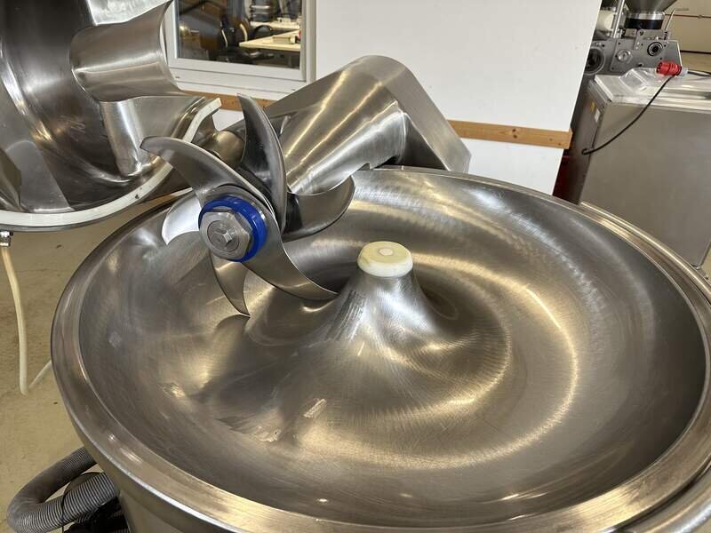 400 Volt, 22/40 kW, komplett Edelstahl, 60 Liter, 6er Messerkopf, stufenlose Geschwindigkeit, Maße B/T/H 130/105/110 cm.