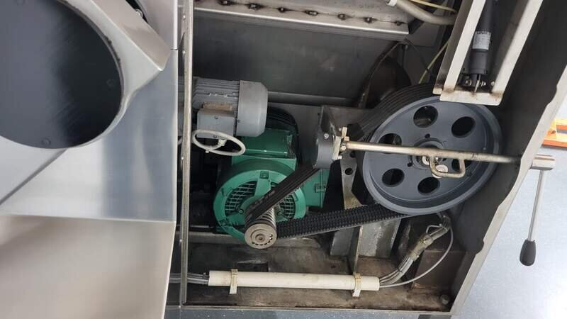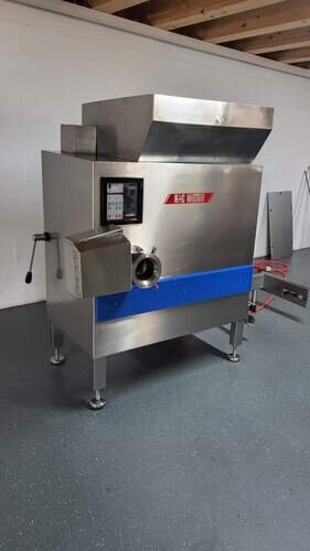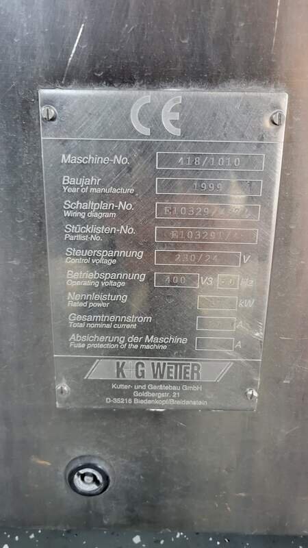 Angeboten wird ein Fleischwolf K+G Wetter WW-130 Bj.1999.Fleischschnecke Neu Gelagert 2-Gang. Motor Leistung 14 x 18,5 Kw.380V. Trichter ca.280L. Siehe Fotos.5 Teiliges Schneidsystem, Scheiben Neu.