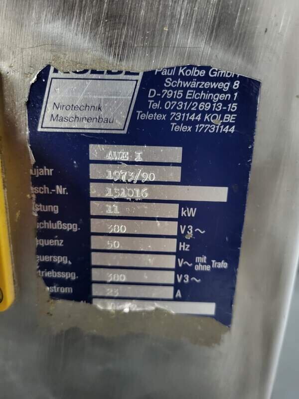 Angeboten wird ein Fleischwolf Kolbe AWE-1 130er in einem guten gebrauchten und funktionstüchtigen Zustand. Das Gerät läuft auf 400 V. 11Kw. 32A. ,Werkstatt geprüft, sofort einsatzbereit.