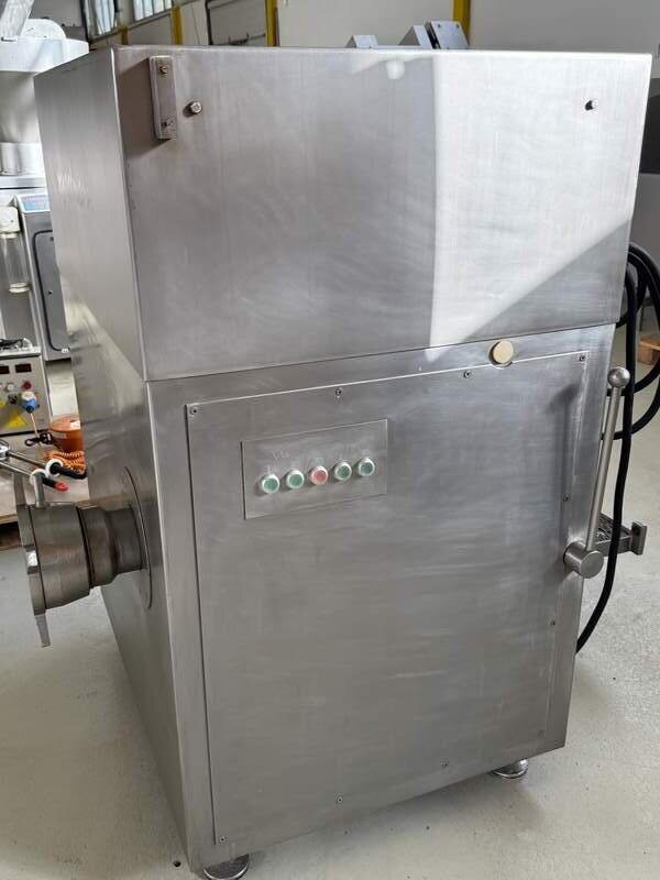 Wir verkaufen hier einen Fleischwolf vom Hersteller Seydelmann Typ AE130 in einem guten gebrauchten und funktionstüchtigen Zustand. Das Gerät läuft auf 400 Volt, 130mm Ungersystem, 2 Geschwindigkeiten, komplett Edelstahl, Winkelwolf, Automatenwolf, Werkstatt geprüft, sofort einsatzbereit, Maße B/T/H 110/110/150 cm, weiteres auf Anfrage.
