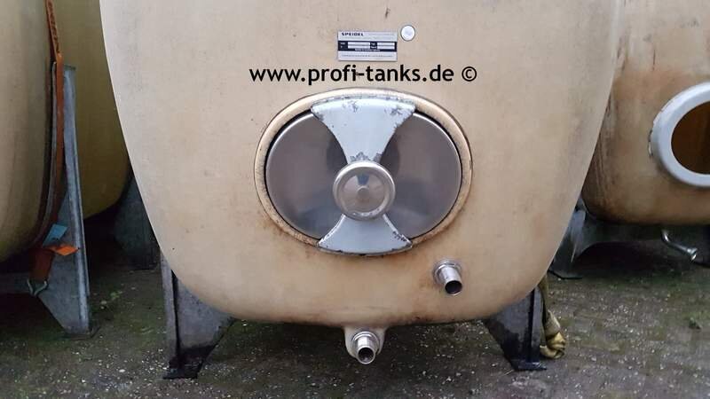 P76 - gebrauchter ca. 6 m³ / 6.000 Liter Polyestertank, Speidel-Tank, liegend, auf zwei Sockeln