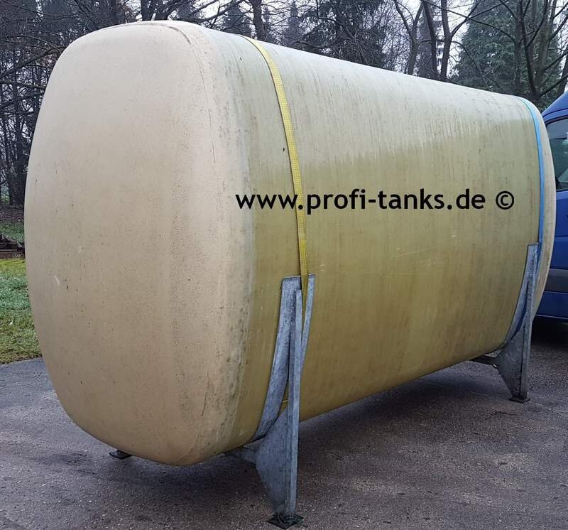 Polyestertank 6.000L GFK-Tank P76, gebraucht, oberirdisch, liegend, 2 Stahlsockel, Speidel-Tank, guter Zustand, ca. 2,10 x 1,20 x 3,45m. Lagertank für Wasser, Flüssigfutter, Molke, Melasse, Gülle, Sickersaft, Rapsöl, Regenauffangtank usw. profi-tanks