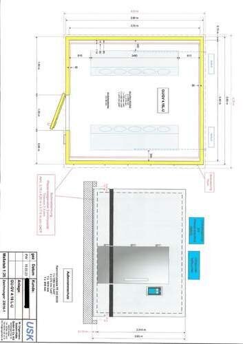 Tiefkühlzelle 3,6m x 3,9 m , 2,63 m hoch, Platz für 16 Stikken, - 25°C / + 15 °C. Kann auch zum Gärautomaten als GU-GV Zelle aufgerüstet werden. Neue Kompressoranlage!