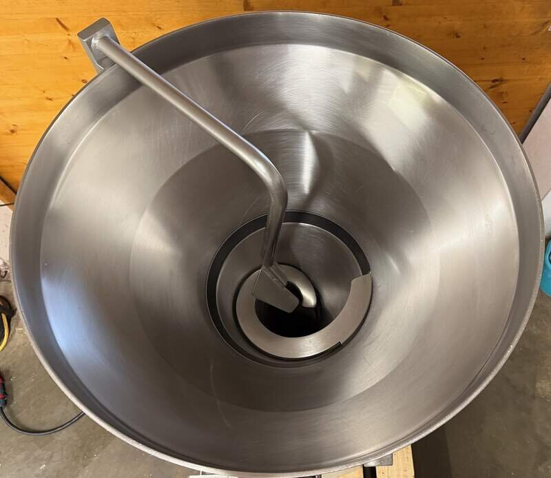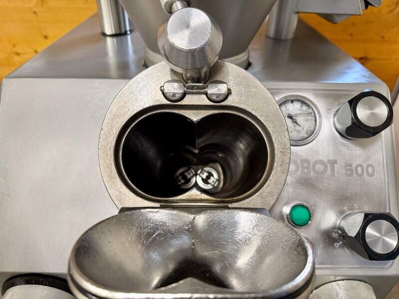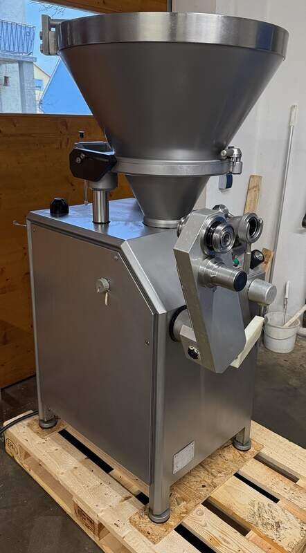Füllmaschine Vemag Robot 500, Vakuumfüllmaschine, mit Abdrehgetriebe und Darmhaltevorrichtung, versch. Füllrohre, Anschluss 400V, 6,5kW, Maße LxBxH ca. 111x70x155cm, Gewicht ca. 450kg, gebrauchte, gepflegte Maschine, voll funktionsfähig