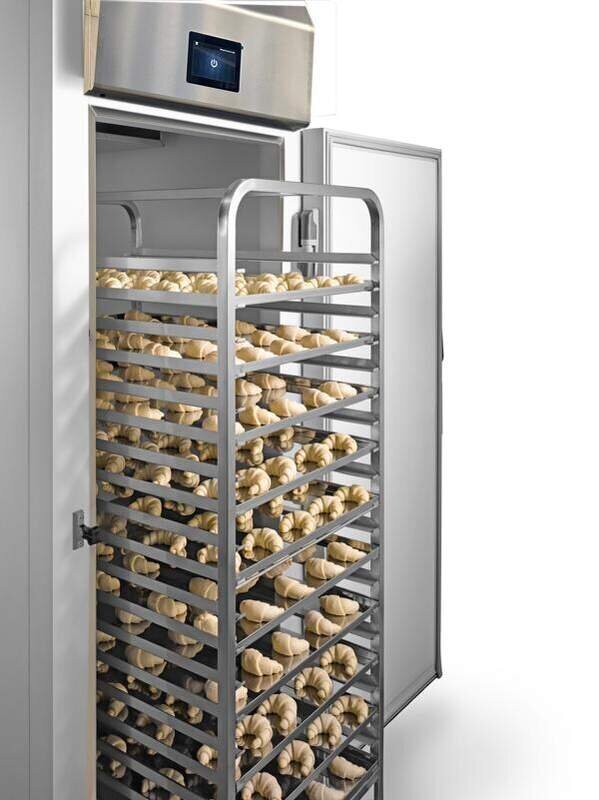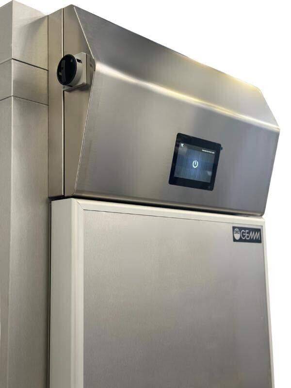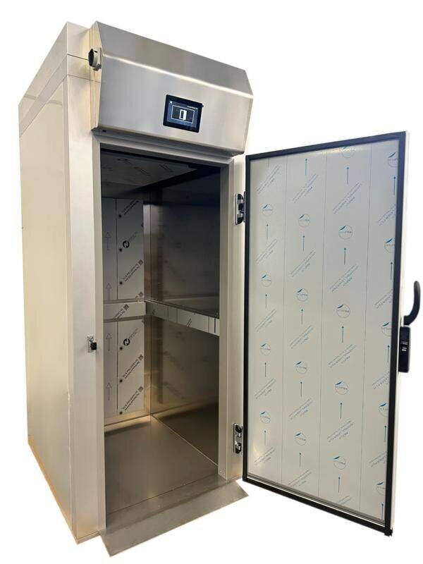 typ GEMM - CL1/MINI, für 1 Stikkenwagen (600 x 800 mm), temperaturbereich: -5 bis zu +40 °C, modularer Aufbau mit 80 mm dicken Paneelen, mit integrierter Rampe, komplett in Edelstahl, einstellbare Luftfeuchtigkeit von 60 - 90 rH%, zustand neu