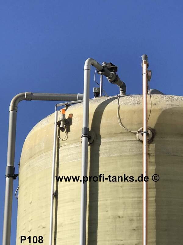 P108 Polyestertank 40.000 Liter GFK-Tank, gebraucht, doppelwandig, Flachboden, vertikal stehend, ca. 3m x 6,5m, Speidel-Tank, guter Zustand, inkl. neuwertigem Leckage-Gerät. Lagertank für viele verschiedene Medien mit bis zu 1,4 kg/L. profi-tanks