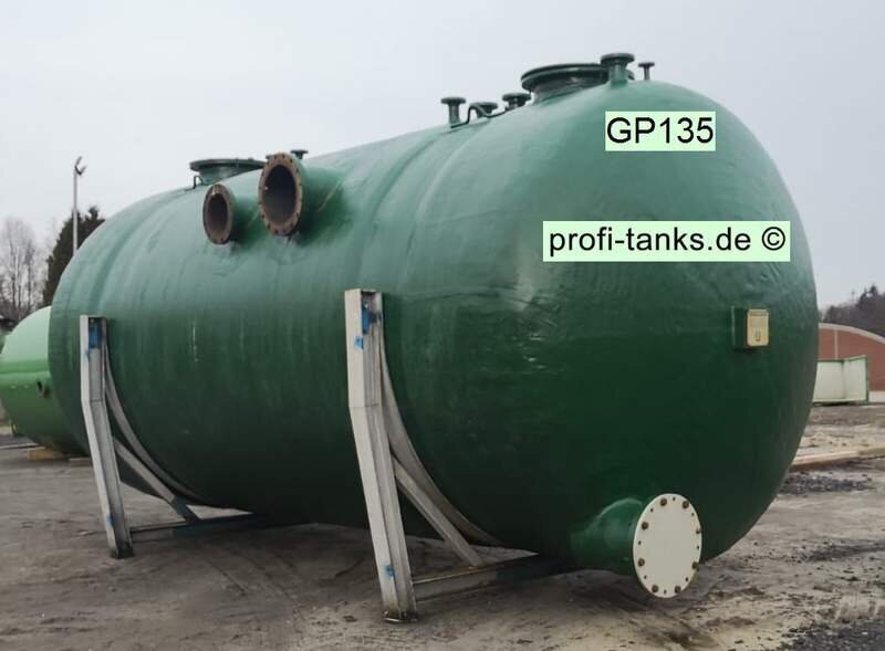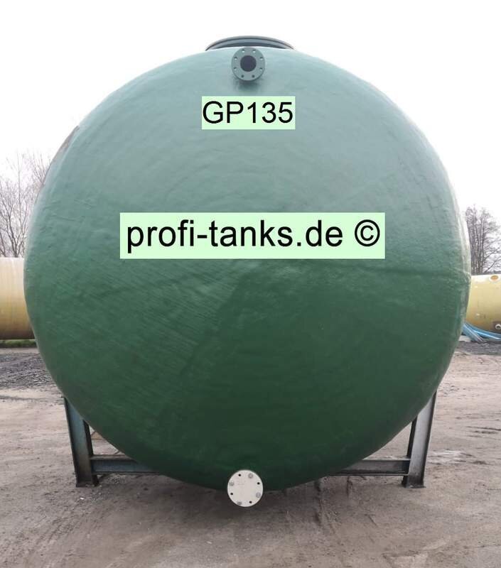 Gebrauchter 46.000 L Polyestertank, GFK-Tank, liegend auf 2 Stahlsockeln, Hersteller Reich, guter Zustand. Lagertank für viele verschiedene Medien: Wasser, Flüssigfutter, Molke, Melasse, Gülle, Sickersaft, Rapsöl, Regenauffangtank usw. profi-tanks