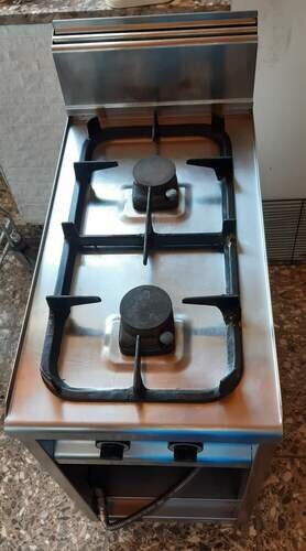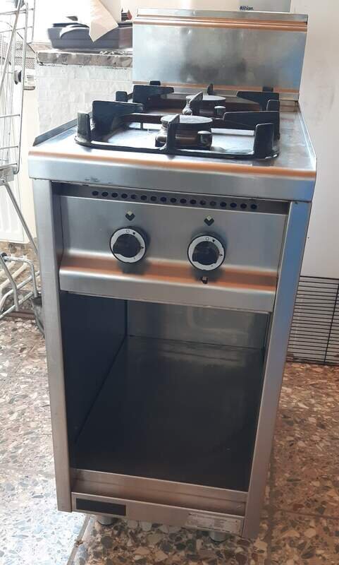 Verkaufen aus dem gastronomischen Gebrauchtwarenhandel einen Gasherd mit zwei Flammen. Das 400x750x850mm große Standgerät mit offenem Schankraum und ist mit Erdgasdüsen ausgestattet. Ein Umbau auf Propangas ist möglich. Der Anschluss muss immer durch einen Fachmann durchgeführt werden.