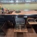 Massive Bar mit Marmor-Theke und Metallverkleidung