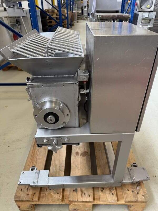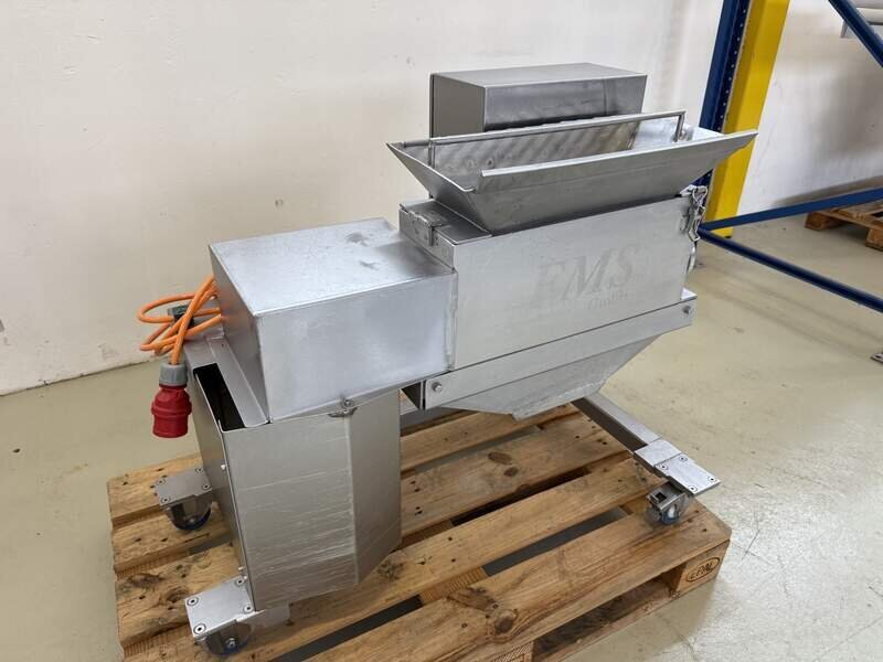 Wir verkaufen hier einen Gefrierfleischschneider / Cräcker vom Hersteller FMS GmbH in einem sehr guten gebrauchten und funktionstüchtigen Zustand. Die Maschine läuft auf 400 Volt, komplett Edelstahl, rollbar, Durchlass 38 cm breit, zum zerkleinern von angefrorenem Fleisch, Werkstatt geprüft, Maße B/T/H 70/95/90 cm, weiteres auf Anfrage.