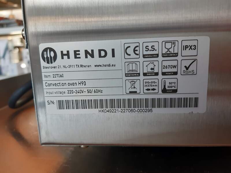 Verkaufen aus der Ausstellung einen Heißluftofen (Konvektorofen H90) der Marke HENDI aus Edelstahl für einen Indor-Betrieb. Mit einem Anschlußwert von 240V-50/60Hz u. einer regelbaren Temperatur von 50°C bis 350°C lässt er für das professionelle backen und garen keine Wünsche offen. Die Abmessungen des freistehenden Gerätes betragen B559xT559xH570mm.