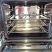 Der Ofen hat eine doppelt verglaste Cool Touch-Tür, welche zur Reinigung aushängbar ist. Er verfügt über zwei Heizelemente und zwei Ventilatoren, Timer bis 120 min sowie Innenbeleuchtung.
