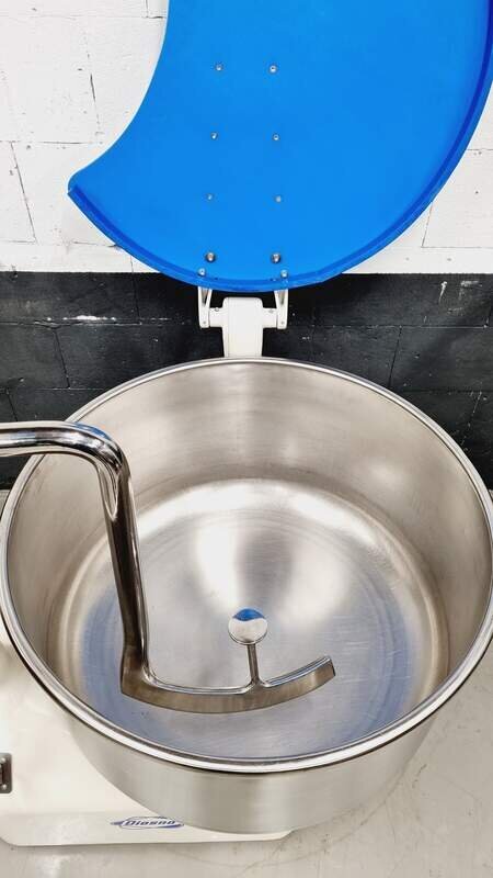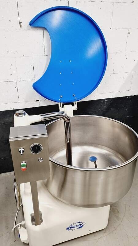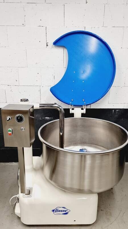 Der Hubkneter Diosna Modell: D 200 mitEdelstahlkessel und Knetarm ist für max. 200 kg Teig sowie Mehlstaubhaube, 2 Gänge und Zeitschaltuhr die Gebrauchtmaschine ist überholt mit 6 Monaten Gewährleistung.