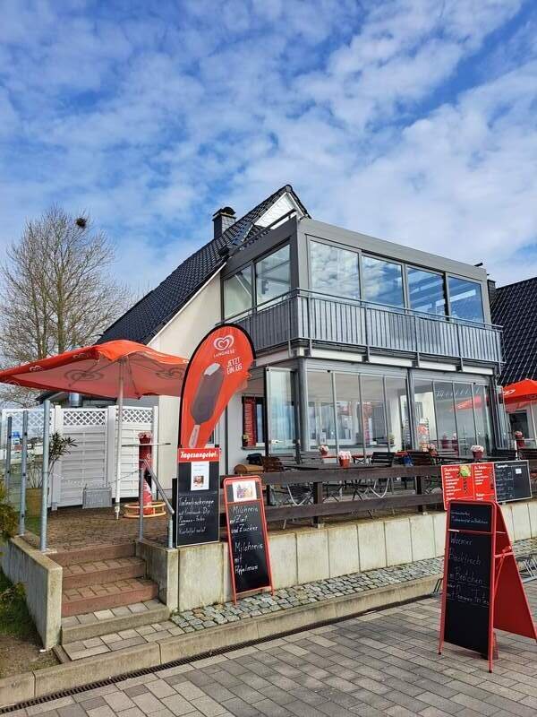 Objektbeschreibung Im Erdgeschoß 61,98m² befindet sich ein komplett ausgestatteter Imbiss mit diversen Zubereitungs-, Kühl- und Tiefkühlgeräten, ein Büro und Sanitärräume. Eine ca. 50m² Terrasse, einschließlich 15m² überdachtem Bereich befindet sich direkt an der Hafenpromenade mit Blick auf das Wasser.