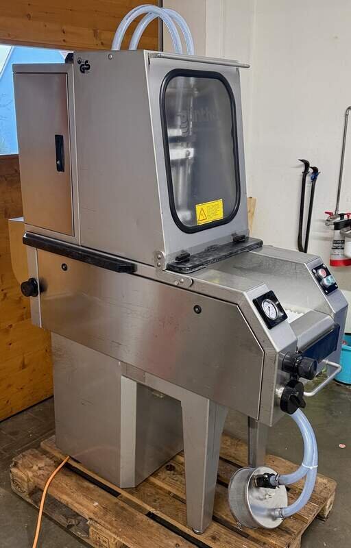 Injektor Günther PI 17, Pökelinjektor mit 17 Nadeln, neue Schläuche und Schellen, neues Manometer, Anschluss 400V, Maße LxBxH ca. 140x56x180cm, Gewicht ca. 263kg, Baujahr 2002, guter Gebrauchtzustand, voll funktionsfähig