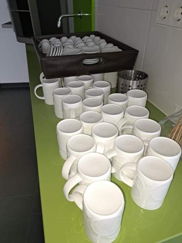 Im Tassenwärmer sind Kaffee und Espresso Tassen ( Anzahl unbekannt!), aber der Raum im Tassenwärmer ist ausgefüllt siehe Bilder