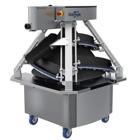 GLIMEK Kegelrundwirker CR-400 GM, Wirkrinnen und Kegel mit Antihaftbeschichtung, über Handrad einstellbare Wirkrinnen, Wirkrinnenunterteile aus Kunststoff, Gebläse für Warm- und Kaltluft, Frequenzumformer, mechanischer Mehlstreuer über dem Auslauf